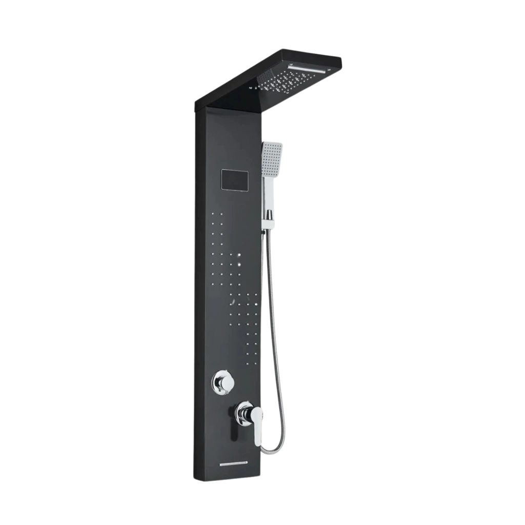Descubre la combinación perfecta de diseño moderno y funcionalidad avanzada con esta regadera de columna en acabado negro mate. Ideal para transformar tu baño en un espacio de relajación y confort.