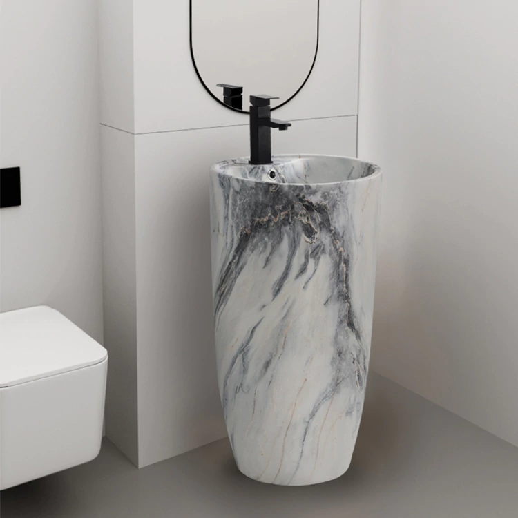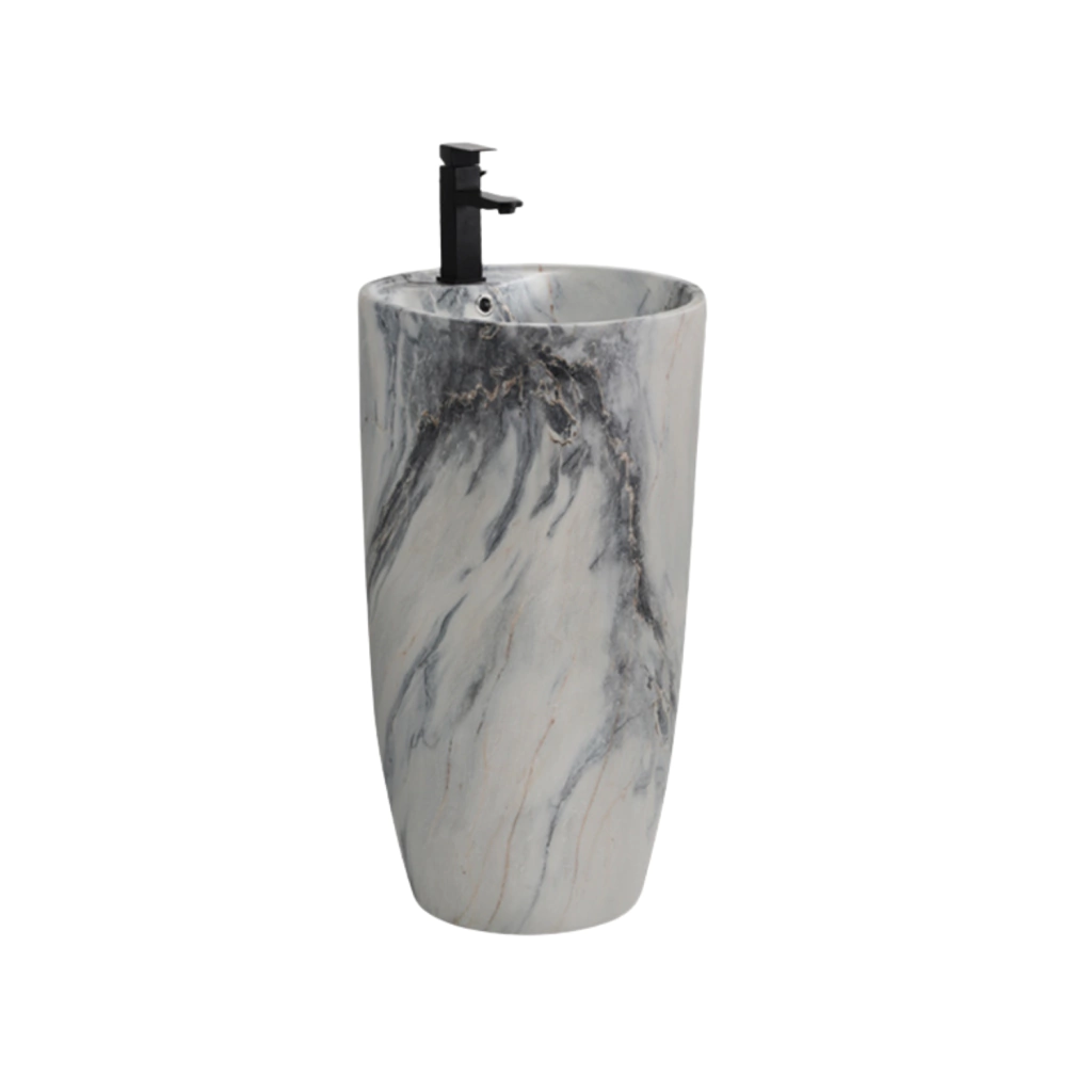 Lavamanos a piso Modelo Narva B-135A Tipo: Redondo Marca KAND Colores disponibles: Blanco brilloso Material. Cerámica Medidas: 46x46x86cm No incluye ningún accesorio