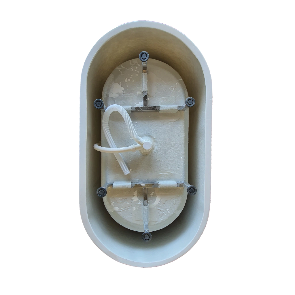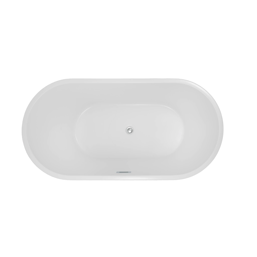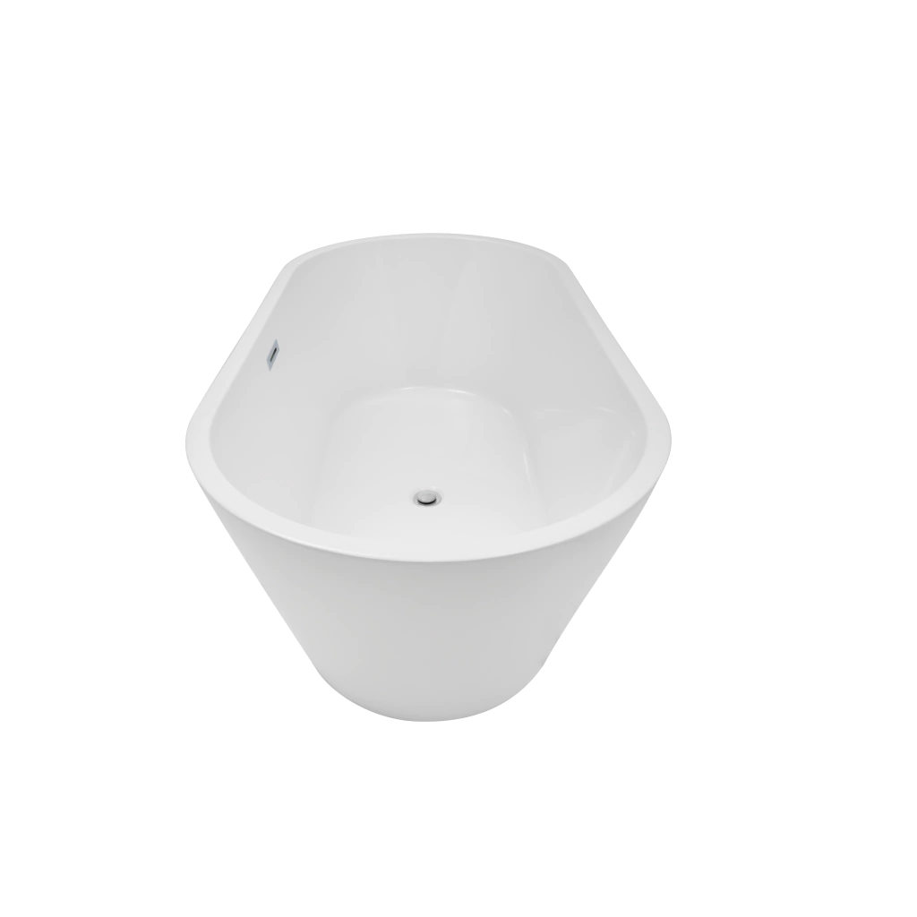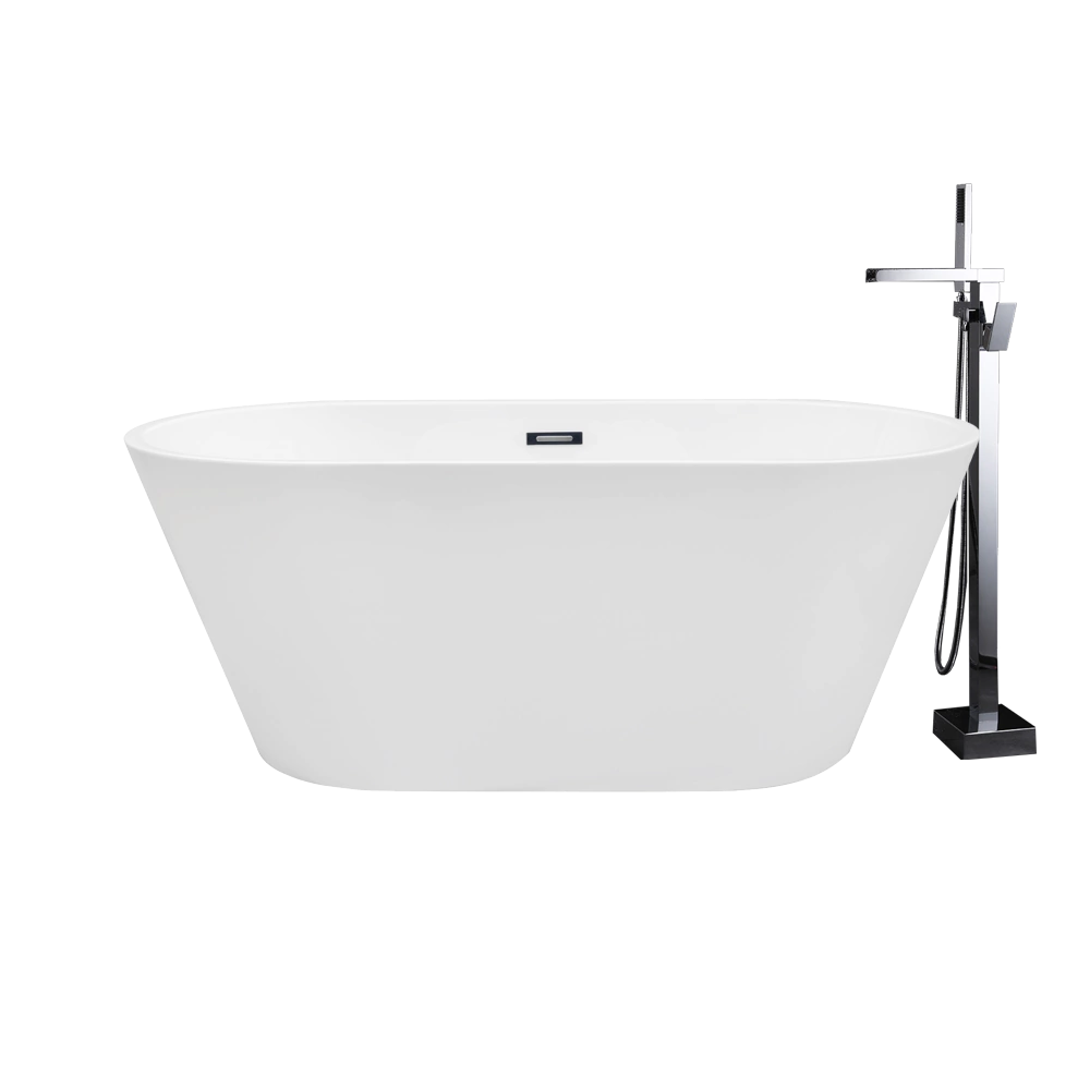 Tina de baño Mykonos Marca Kand Desagüe y rebosadero cromo incluido Con llave a piso cuadrada cromo pulido Medida 150x75x58cm Color: Blanco
